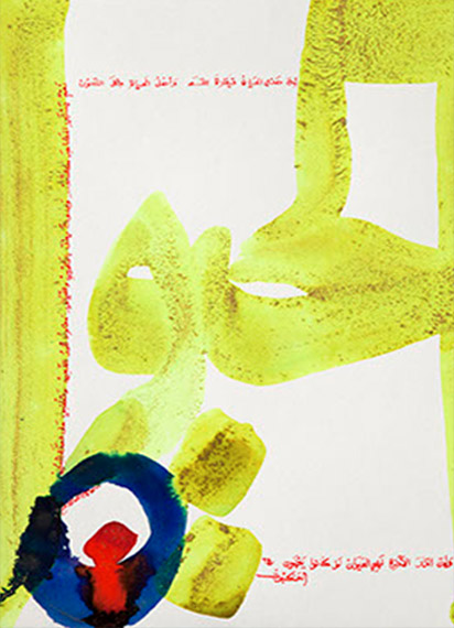 FA: Absolutely. I mean there is merit in continuing traditions, but I’d rather explore how traditions can evolve. Because my work doesn’t resemble a recognizable style nor strictly follow a tradition doesn’t mean it lacks discipline. Actually it is very disciplined in terms of elements, colour, and composition. The way I evaluate the work of a calligrapher is in his or her capacity to interpret. Say like a composer in Sydney, Boston, or Muscat – reinterpreting the work of Telemann or Tchaikovsky. How does the artist analyse the existing sound? How does he or she present it from another angle? Calligraphers have a lineage that we should maintain, but this tradition should not stop here. We need innovation.